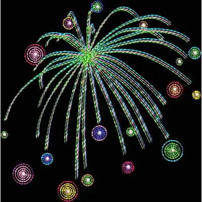 This digital machine embroidery design features vibrant fireworks bursting with colorful sparkles and radiant trails. Available in all hoop sizes.