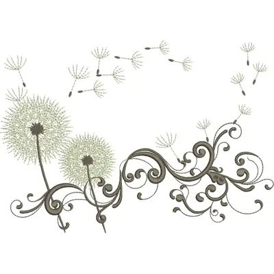 This digital machine embroidery design features whimsical dandelions with intricate swirling vines and delicate seed wisps. Available in all hoop sizes.