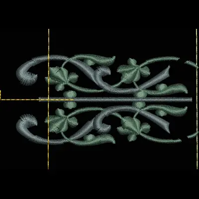 This digital machine embroidery design features intertwined leaves and flowing vines in shades of green and grey. Available for 8X8 hoops.