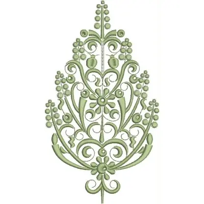This digital machine embroidery design features a detailed floral arrangement featuring various leaves and blossoms in shades of green. Available in all hoop sizes.