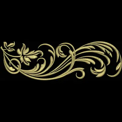 This digital machine embroidery design features elegant swirling foliage and flowers in a golden hue. Available in all hoop sizes.