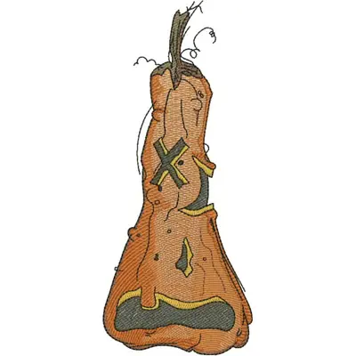 This digital machine embroidery design features a whimsical pumpkin with carved features and a leafy stem. Available in all hoop sizes.
