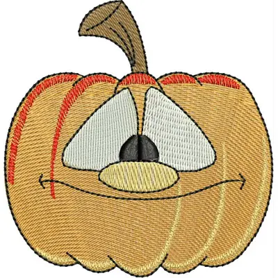 This embroidery design features a smiling pumpkin with a playful expression and a stylized stem on top. Available for 4X4 hoops.