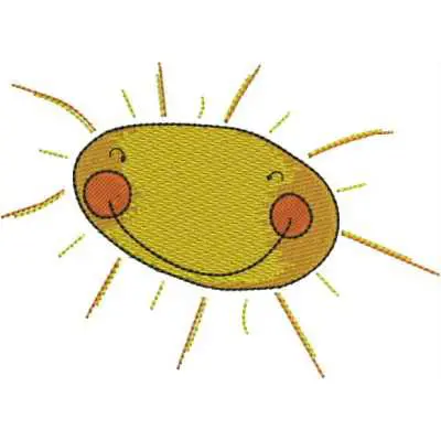 This digital machine embroidery design features a cheerful sun with a smiling face and bright rays emanating from it. Available for 4X5 hoops.
