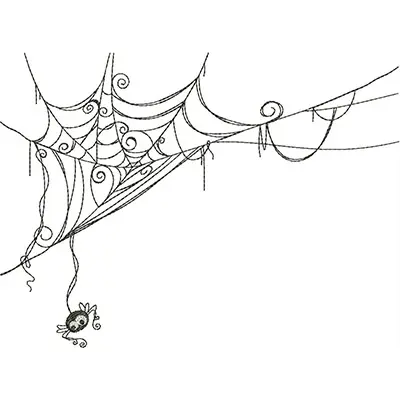 This digital machine embroidery design features a delicate spider web with intricate patterns and a small spider hanging from it. Available for 5X7 hoops.