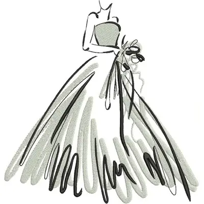 This digital machine embroidery design features a graceful evening gown with flowing lines and a delicate bow. Available in all hoop sizes.