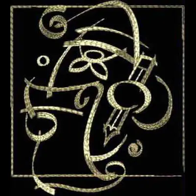 This embroidery design features intricate, swirling golden lines and shapes creating a decorative and artistic composition. Available for 5X7 hoops.