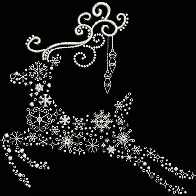 This digital machine embroidery design features a delicate reindeer adorned with intricate snowflake patterns and whimsical curls. Available in all hoop sizes.