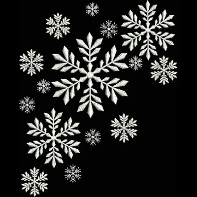 An embroidery design of various intricate white snowflakes in different sizes and styles, creating a winter-themed motif.