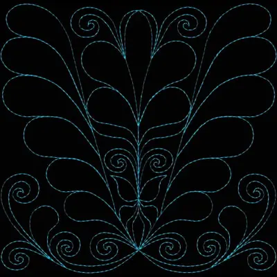 This digital machine embroidery design features intricate swirls and flowing leaves arranged in a symmetrical pattern. Available in all hoop sizes.