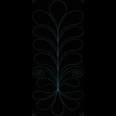 This digital machine embroidery design features a symmetrical floral motif featuring flowing leaves and swirling elements. Available in all hoop sizes.