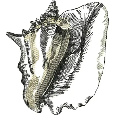This digital machine embroidery design features a detailed seashell featuring intricate lines and textures. Available in all hoop sizes.