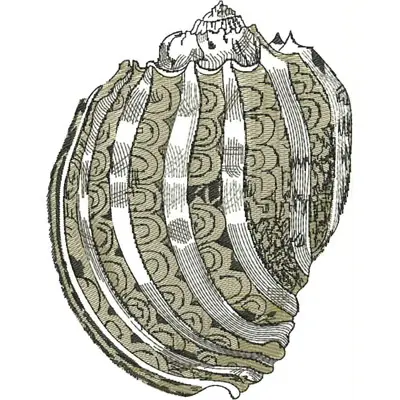 This digital machine embroidery design features a detailed seashell featuring intricate lines and textured patterns. Available in all hoop sizes.