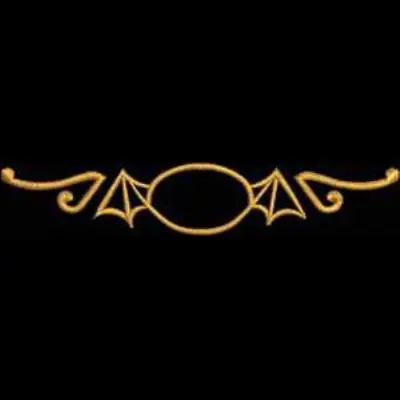 This digital machine embroidery design features a decorative border featuring elegant swirls and bat-like shapes on either side of an oval center. Available for 4X5 hoops.