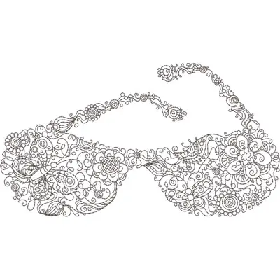 This digital machine embroidery design features ornate sunglasses adorned with intricate floral and swirling patterns. Available in all hoop sizes.