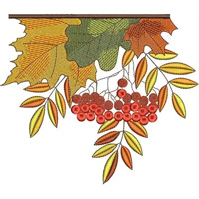 This digital machine embroidery design features vibrant autumn leaves and clusters of bright red berries, capturing the essence of fall foliage. Available in all hoop sizes.
