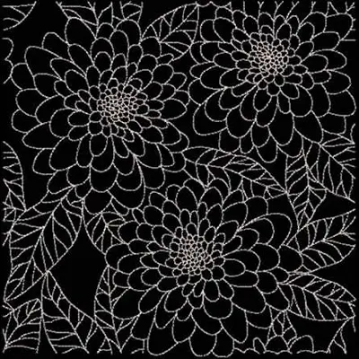 This digital machine embroidery design features detailed, large flowers surrounded by intricate leaves, all rendered in a delicate stitch pattern. Available in all hoop sizes.