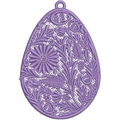 This digital machine embroidery design features a decorative purple egg featuring intricate floral patterns and detailing. Available in all hoop sizes.
