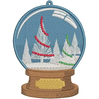 This embroidery design features a snow globe featuring decorated trees in winter colors. Available in all hoop sizes. Perfect for singles - 4x4 embroidery projects.
