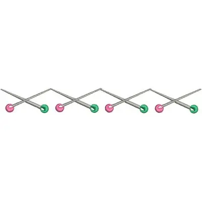This digital machine embroidery design features zigzagging sewing pins with alternating pink and green heads. Available in all hoop sizes.