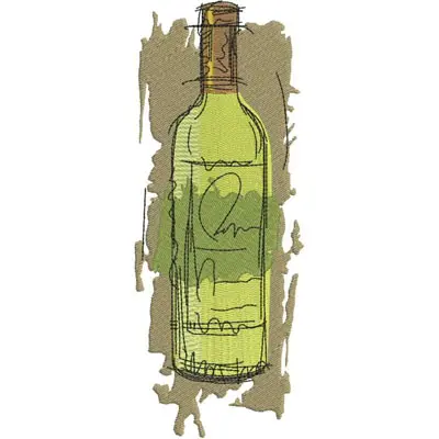 This digital machine embroidery design features a green wine bottle with a simple sketch-like appearance. Available in all hoop sizes.