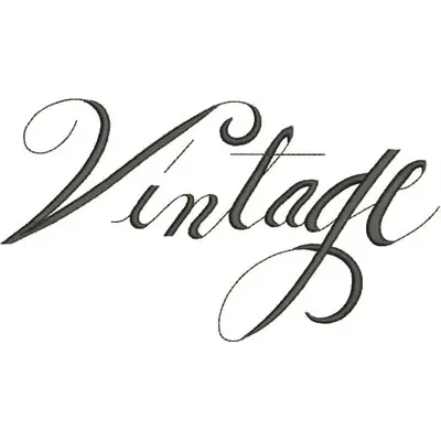 This digital machine embroidery design features the word "Vintage" in elegant cursive lettering. Available in all hoop sizes.