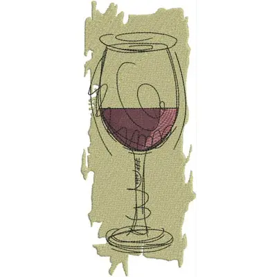 This digital machine embroidery design features a wine glass featuring a simple, artistic outline with a hint of purple representing the wine inside. Available in all hoop sizes.