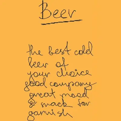 This digital machine embroidery design features the word "Beer" followed by a playful, handwritten message highlighting the enjoyment of cold beer, good company, and snacks. Available in all hoop sizes.