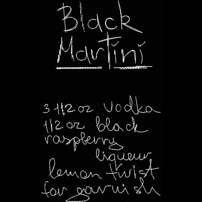 This digital machine embroidery design features a recipe for a Black Martini featuring ingredients listed in a handwritten style. Available in all hoop sizes.