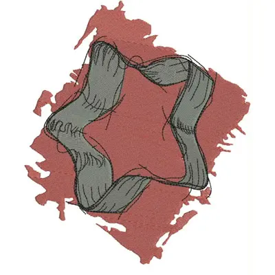 This embroidery design features a wavy, stylized ribbon forming a star shape in gray tones. Available in all hoop sizes.