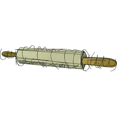 This digital machine embroidery design features a rolling pin with wooden handles and a textured body. Available in all hoop sizes.