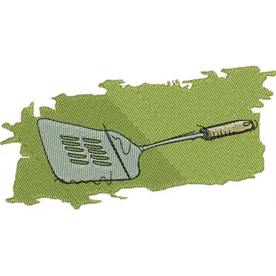 This digital machine embroidery design features a slotted spatula with a wooden handle. Available in all hoop sizes.