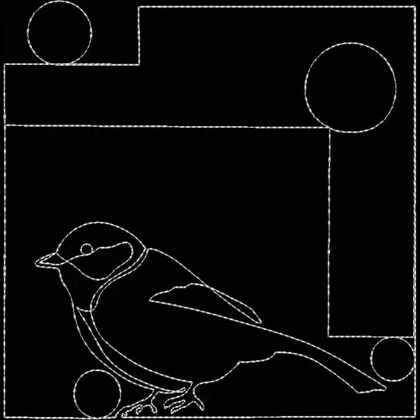 This digital machine embroidery design features a bird accompanied by geometric shapes. Available for 5X7 hoops.