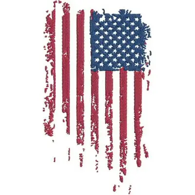 This digital machine embroidery design features a distressed American flag featuring red stripes and a blue field with white stars. Available for 5X7 hoops.