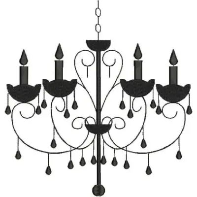 This digital machine embroidery design features an elegant chandelier featuring decorative curves, candles, and hanging drops. Available in all hoop sizes.