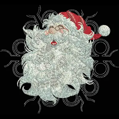 This digital machine embroidery design features a jolly Santa Claus with a fluffy white beard and a red hat. Available in all hoop sizes.