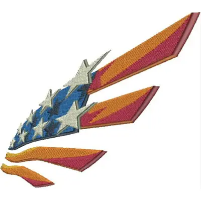 Digital machine embroidery design "SAS Abstract Flag" in the patriotic theme for 5x7 hoops an embroidery design of a stylized eagle feather featuring a blend of american flag colors and dynamic shapes. from Kreations by Kara.