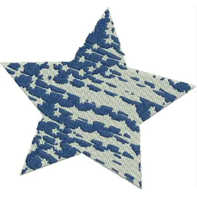 This digital machine embroidery design features a star featuring a textured blue pattern. Available for 5X5 hoops.