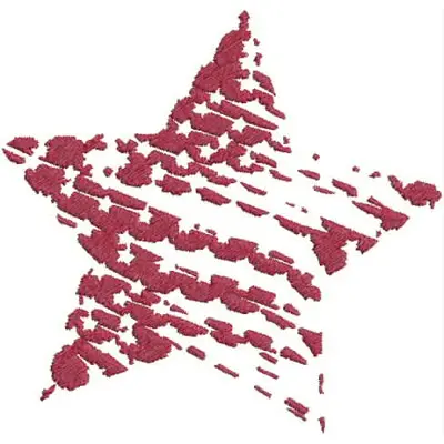 This digital machine embroidery design features a stylized star appearing to burst or trail off in a rich burgundy color. Available for 5X5 hoops.
