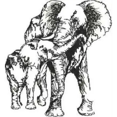 This digital machine embroidery design features two elephants displaying a tender pose, emphasizing their intricate details and textures. Available for 6X8 hoops.