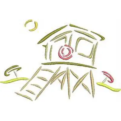 This digital machine embroidery design features a lifeguard tower with steps and decorative elements, capturing a seaside theme. Available for 4X4 hoops.