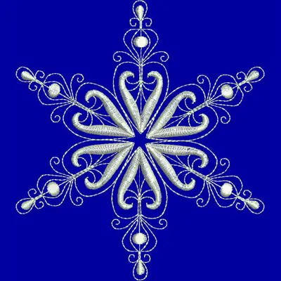 This digital machine embroidery design features an elaborate snowflake featuring intricate swirls and decorative elements. Available in all hoop sizes.