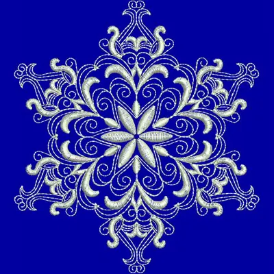 This digital machine embroidery design features an intricate snowflake pattern featuring swirling lines and floral motifs in elegant shapes. Available in all hoop sizes.