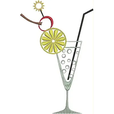 This digital machine embroidery design features a refreshing cocktail glass adorned with a slice of lemon and a cherry on top. Available in all hoop sizes.