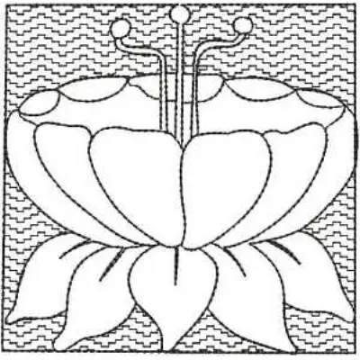 This digital machine embroidery design features a stylized flower with large petals and delicate stamen, framed by curved leaves. Available in all hoop sizes.
