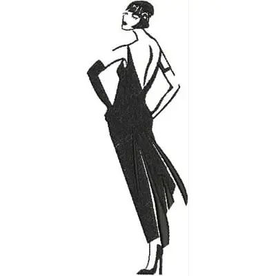 This digital machine embroidery design features a stylish figure in an elegant black dress, featuring high heels and a chic hairstyle. Available in all hoop sizes.