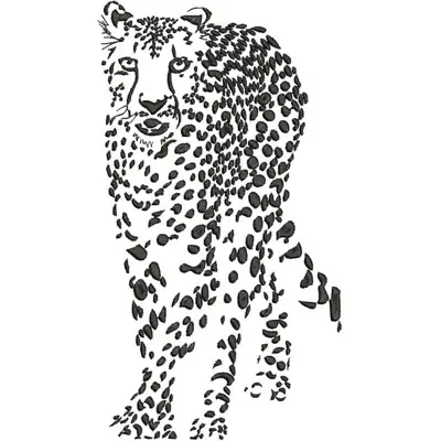 This digital machine embroidery design features a stylized cheetah featuring intricate patterns and textures. Available in all hoop sizes.