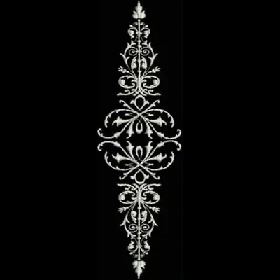 This digital machine embroidery design features an ornate, symmetrical floral motif featuring intricate swirls and embellishments. Available for 5X7 hoops.